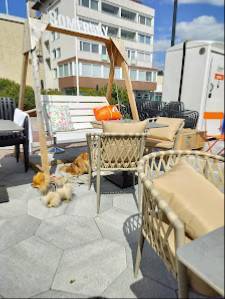 Upea, tyylikäs terde ja aivan loistava henkilökunta. Ruokaa, jäätelöä, limua ja vähän drinkkiä tuli otettua töiden lomassa ja kaikki maittoi. Aurinkoisena päivänä kivan oloinen terassi. Suolaisista vaihtoehdoista savulohi oli harmillisesti loppu. Annokset maltillisen kokoiset, myös tarjoiltu pieniltä lautasilta. Siihen nähden myös hinta (15,90) voisi olla maltillisempi. Koirat ovat tervetulleita terassille.